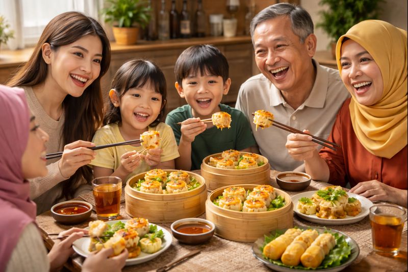 Dimsum bukan hanya camilan biasa, tetapi juga cocok disajikan dalam berbagai acara seperti arisan, ulang tahun, meeting kantor, hingga acara keluarga. Bentuknya yang praktis dan mudah disajikan membuat dimsum menjadi pilihan ideal untuk snack box maupun catering. Rasanya yang universal membuat tamu dari berbagai usia dapat menikmatinya tanpa ragu.