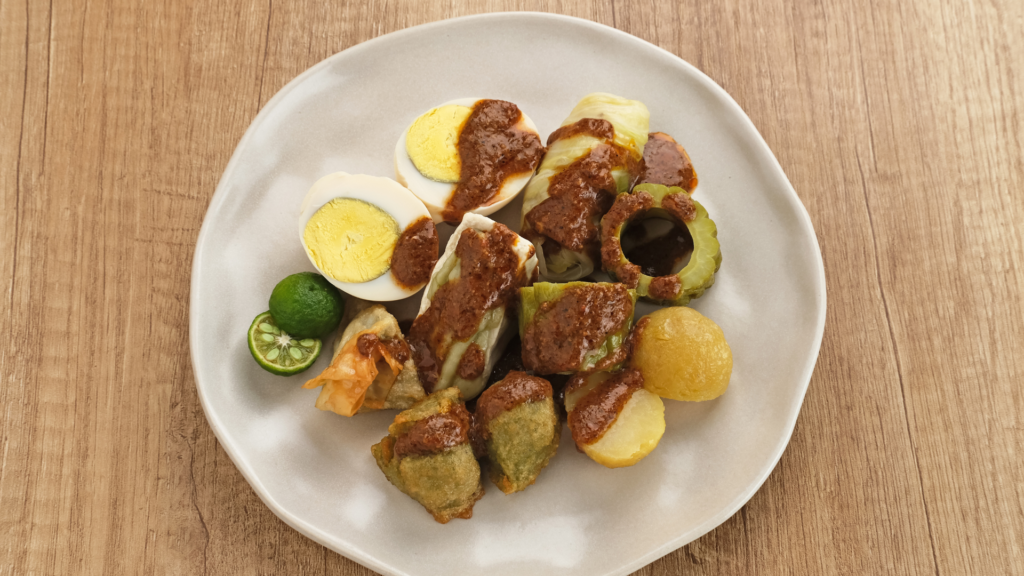 Sajikan dengan bumbu kacang, kecap manis, dan perasan jeruk limau.